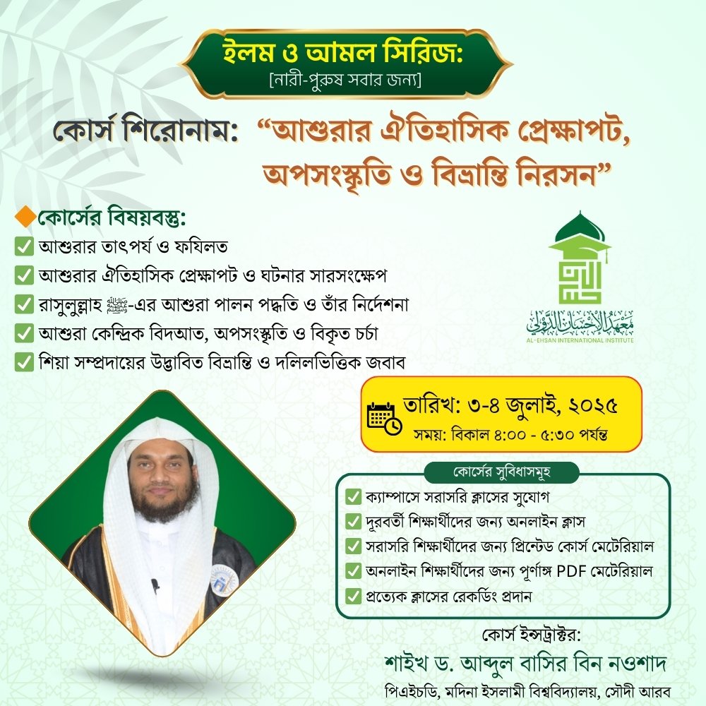 “আশুরার ঐতিহাসিক প্রেক্ষাপট, অপসংস্কৃতি ও বিভ্রান্তি নিরসন” (বিশুদ্ধ আকীদা ও মানহাজ ভিত্তিক একটি বিশেষ শিক্ষাক্রম)